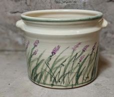 Our pottery is handmade right in our studio in Oxford, NY. Each piece is individually made and decorated and is wheel thrown or slab built by hand with vibrant pastel colors in several designs.